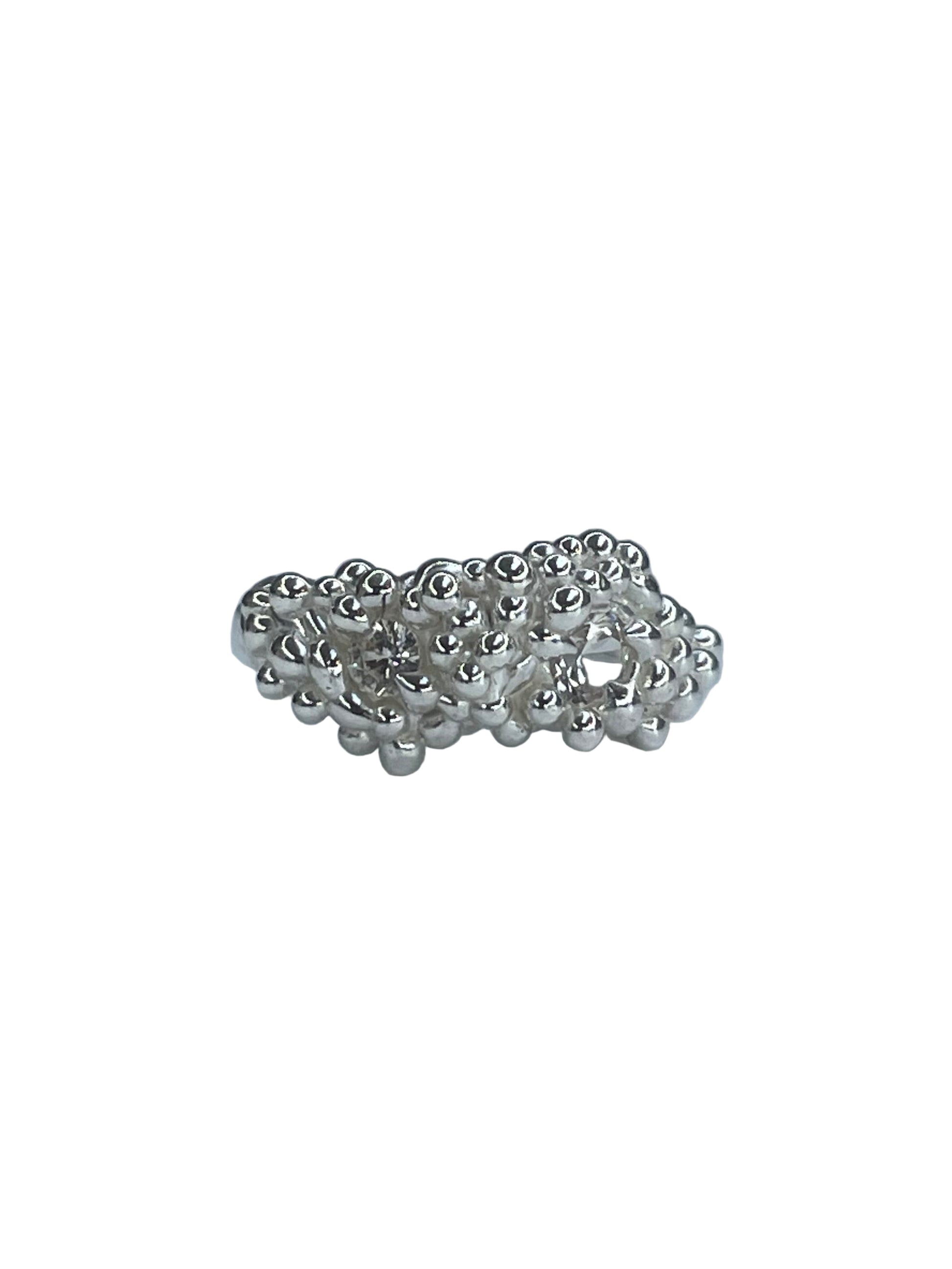 A self-taught jeweller, Bebe James has a close relationship to the tactility of materials. Working with sustainably sourced gemstones and sterling silver, their qualities are honoured in every piece of jewellery, developing playful forms that blur the threshold between the classical and imaginative. Lucid memories of childhood – a daydream of liquid stars and private symbology – inform Bebe’s design language. These forms are preserved through lost wax casting, the transformative process at the heart of her practice. Each piece is made to order in her home studio in Dunedin.