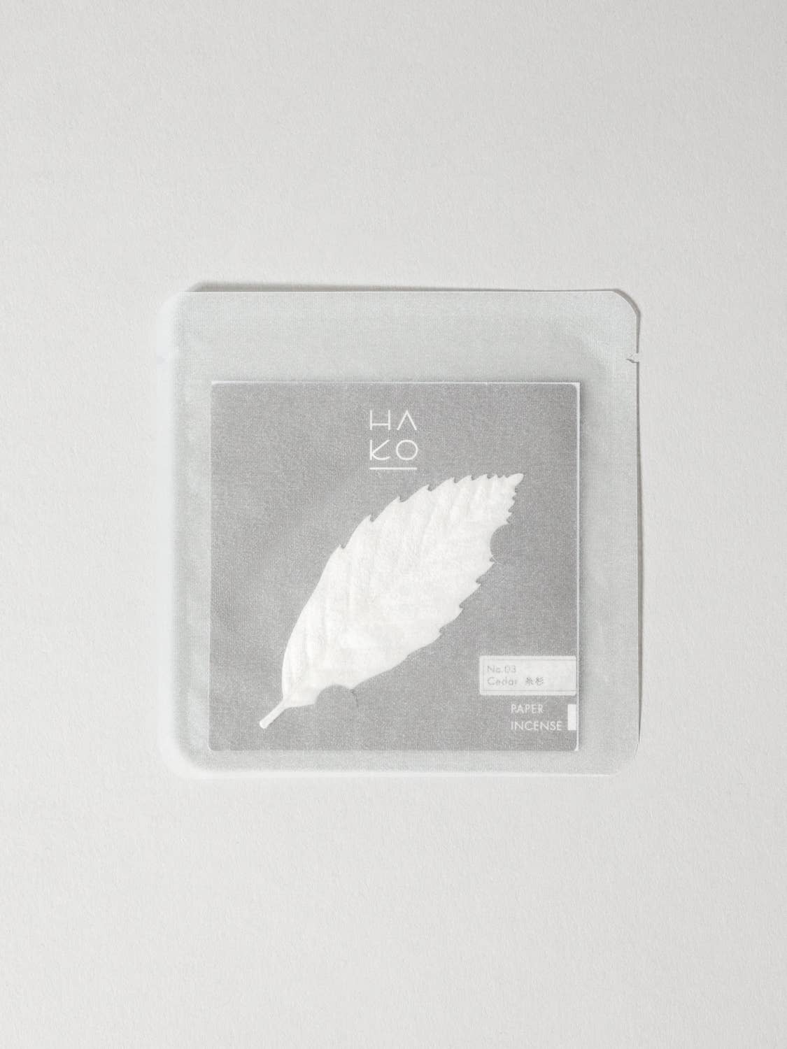 An individually packaged HA KO leaf is the perfect introduction to this new form of incense, which was developed over the course of five years by one of Japan's oldest incense makers. Each leaf can be used as subtle potpourri, giving off fragrance for up to three months, or as incense that burns for approximately seven minutes while cleansing and deodorizing an area.